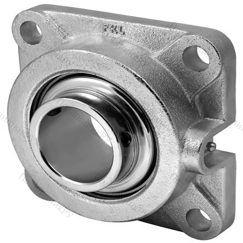 Фланцевого корпуса типа F (по классификации FKL), квадратного сечения с 4 отверстиями под болты. Устанавливается на вертикальные опорные поверхности. Иными брендами маркируется иначе. Пример: SKF – FY(J), FAG – FG56, INA – CF/CJ, NSK и NTN – F.