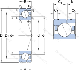| Номинальная статическая грузоподъёмность | C0 | 14.6 | kN | |